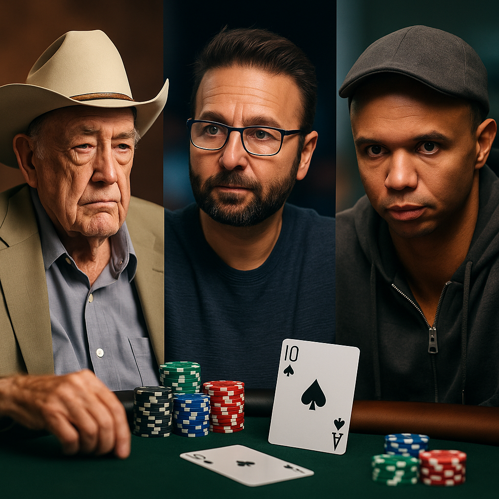 U središtu te priče nalaze se legendarni igrači koji su svojim stilom igre, filozofijom i inovacijama promenili način na koji svet gleda na poker. Svaki od njih doneo je nešto jedinstveno – od agresivne strategije Doylea Brunsona do hladnokrvne preciznosti Phila Iveya i psihološkog šarma Daniela Negreana.