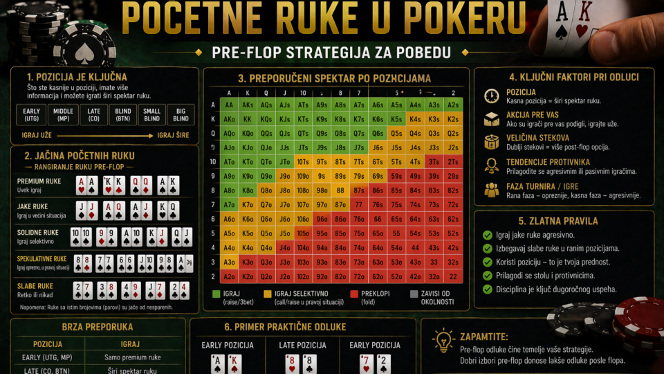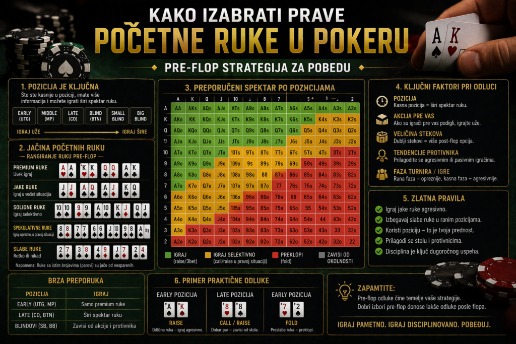Ako postoji jedna stvar koja najviše razlikuje rekreativnog igrača od ozbiljnog poker igrača, to je izbor početnih ruku u pokeru. Pre-flop odluke deluju jednostavno, ali upravo tu se pravi najveći broj grešaka.
